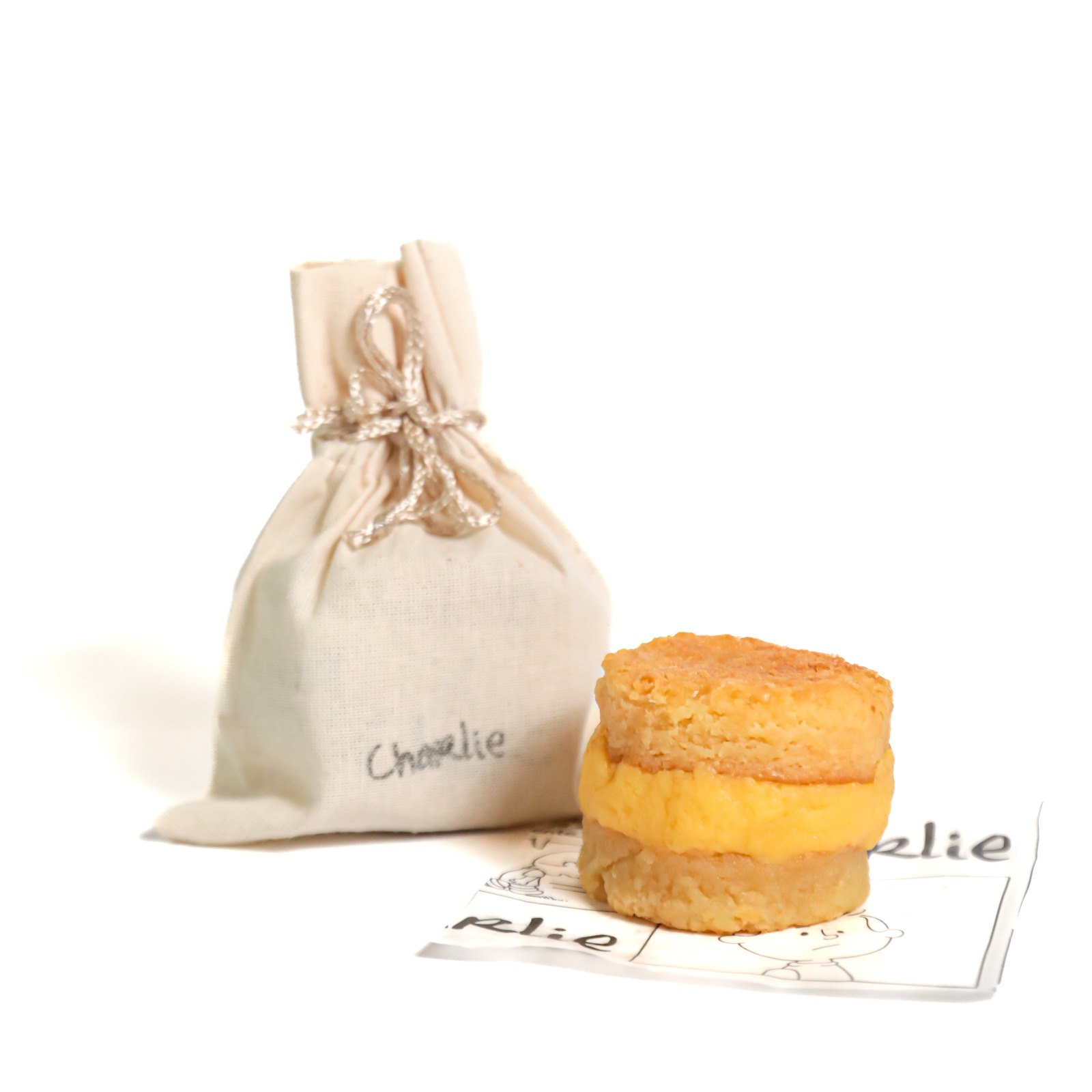 Massa de blondie (brownie de chocolate branco) com recheio de creme de ovos (65g)