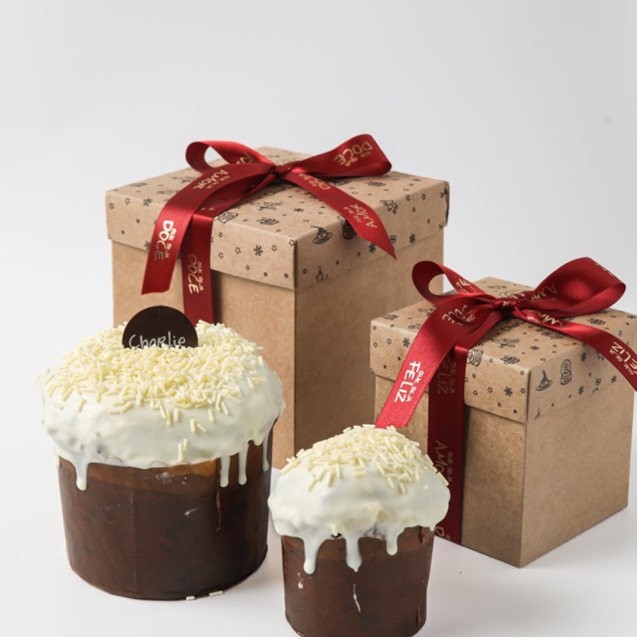 Elaborado com massa de brownie especialmente assado para versão chocotone e recheado com ganache de chocolate branco