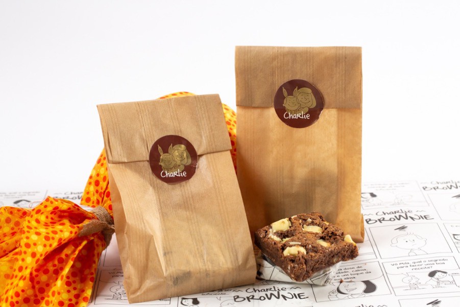 Cada pacote contém 01 fatia de Brownie clássico 60g embalado em papel manteiga